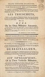 | Keywords: Théâtre Bruges 1813.jpg nl Aankondiging van een toneelopvoering door het gezelschap De Hollandsche Toonneellisten in de schouwburg van Brugge België op zondag 8 augustus 1813 met twee stukken van August von Kotzebue Die Stricknadeln De Breinaalden en Das Duell Het Duel en Announcement of a theatrical performance by the Hollandsche Toonneellisten in the theater of Bruges Belgium on Sunday 8 August 1813 performing two pieces by August von Kotzebue Die Stricknadeln The knitting needles and Das Duell The Duel fr Annonce d'une représentation par la troupe des Hollandsche Toonneellisten au théâtre de Bruges Belgique le dimanche 8 août 1813 de deux pièces d'August von Kotzebue Die Stricknadeln Les aiguilles à tricoter en Das Duell Le duel 2015-05-25 23 25 20 private collection scanned by Marc Ryckaert please mention Collection Marc Ryckaert other versions PD-old Uploaded with UploadWizard Theaters in Bruges August von Kotzebue Images by MJJR |