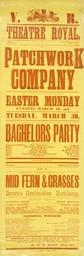 | Keywords: text writing Arrangement of text. Dramatis Personae. Augustus Brown, Willie Percival, D'Orsay Granger, Charlie Leon, Bertie Traynor, E. J. Hill, Hart Russell, J. W. Hilton, Miss Nellie Forrest, Cecil Riverton, Miss Maude Eastburne, Harrington Aide. Quantity: 1 colour art print(s). Physical Description: Letterpress, red on yellow 865 x 282 mm. Provenance: Donated by Mrs E E Hill, Lower Hutt, in November 1974. Hill, E E (Mrs), fl 1974. Theatre Royal :The Patchwork Company have the honour to announce that they will make their re-appearance on Easter Monday Evening, March 29 and Tuesday March 30...an entirely new and original white face sketch, entitled the Bachelors Party...Part II,.. Mid Fern and Grasses, or Brown's combination ruralising...H. W. P Blow, Hon Sec. Evening Chronicle Steam Print [1880].. Ref: Eph-E-VARIETY-1880-01. Alexander Turnbull Library, Wellington, New Zealand. natlib.govt.nz/records/22725211 Arrangement of text. Dramatis Personae. Augustus Brown, Willie Percival, D'Orsay Granger, Charlie Leon, Bertie Traynor, E. J. Hill, Hart Russell, J. W. Hilton, Miss Nellie Forrest, Cecil Riverton, Miss Maude Eastburne, Harrington Aide. Quantity: 1 colour art print(s). Physical Description: Letterpress, red on yellow 865 x 282 mm. Provenance: Donated by Mrs E E Hill, Lower Hutt, in November 1974. Hill, E E (Mrs), fl 1974. Theatre Royal :The Patchwork Company have the honour to announce that they will make their re-appearance on Easter Monday Evening, March 29 and Tuesday March 30...an entirely new and original white face sketch, entitled the Bachelors Party...Part II,.. Mid Fern and Grasses, or Brown's combination ruralising...H. W. P Blow, Hon Sec. Evening Chronicle Steam Print [1880].. Ref: Eph-E-VARIETY-1880-01. Alexander Turnbull Library, Wellington, New Zealand. natlib.govt.nz/records/22725211 |