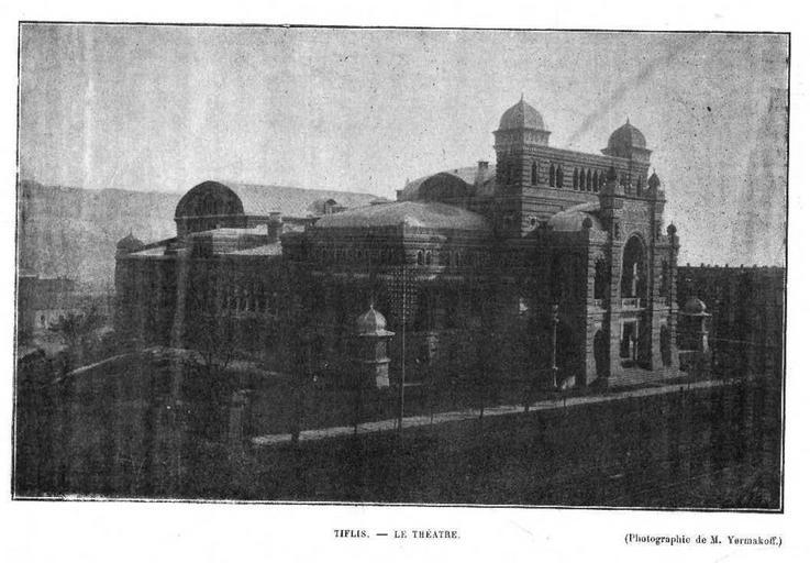 | Keywords: Theatre, Tbilisi (Yermakov photo).JPG en Theatre Tbilisi Yermakov photo 1900 Joseph Berthelot Baron de Baye 1853-1931 Tiflis Souvenirs d'une mission / Par le baron de Baye ; extrait de la Revue deGeographie Livraisons d'Aout Septembre et Octobre dirigee par M L Drapeyron Nilsson 1900 http //dlib rsl ru/view php path /rsl01004000000/rsl01004460000/rsl01004460315/rsl01004460315 pdf page 1 Russian State Library Creator Dimitry Ermakov Custom license marker 2012 08 04 70 Uploaded with UploadWizard Photos of Tbilisi by Dimitri Ermakov Tbilisi Opera House |