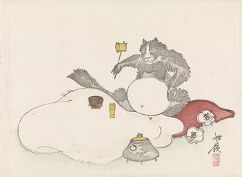 | Keywords: Theeceremonie van een wasbeer-Rijksmuseum RP-P-1995-339.jpeg accession number RP-P-1995-339 Shôrei credit line GWToolset Rijksmuseum nl De wasbeer zit met bolle buik klaar voor de theeceremonie Alle attributen zijn klaargezet op zijn enorme scrotum Op de voorgrond een komfoortje Wasberen zijn in Japan magische dieren hun enorme testikels symboliseren financieel geluk Een Shijo-stijl surimono met meerdere korte gedichten Label Line mentioned on object Shôrei ca 1840 - ca 1880 kleurenhoutsnede; lijnblok in zwart met kleurblokken Collection prenten; Japan collectie blad Height mm 522 blad Width mm 199 exhibition history paper object history Acquisition 1995 object type prent PD-US PD-old Data and photography rights All data and all images made available through the API are either in the public domain or are subject to a CC0 license https //www rijksmuseum nl/en/api/terms-and-conditions-of-use cc-zero place of creation Japan http //www rijksmuseum nl/collectie/RP-P-1995-339 http //hdl handle net/10934/RM0001 COLLECT 318924 handle Theeceremonie van een wasbeer Uploaded with GWToolset Rijksmuseum RP-P-1995-339 http //www rijksmuseum nl/media/assets/RP-P-1995-339 Images uploaded by Fæ Images from the Rijksmuseum Japanese 19th-century prints in the Rijksmuseum Amsterdam Tanuki |