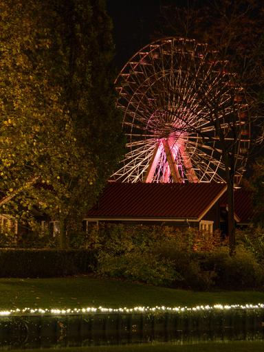 Keywords: theme park slagharen netherlands holland night lights lamps light rest tranquility deserted devoutly kamble water ferris wheel illuminated