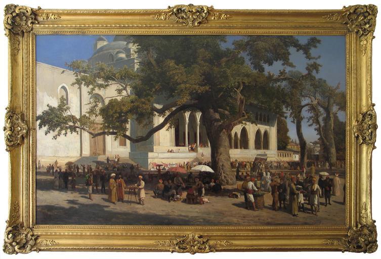 | Keywords: Themistocles von Eckenbrecher, painting from 1873.jpg A busy market in the courtyard of the New Mosque Istanbul Platz bei der Moschee 'Jeni Dschami' in Constantinopel TvEckenbrecher/1873 signature / date lower left oil canvas cm 140 200 Private collection Creator Themistokles von Eckenbrecher 1873 PD-old-auto-1923 1923 1873 orientalist paintings Orientalist paintings by Themistokles von Eckenbrecher New Mosque Istanbul Istanbul in art Mosques in art Paintings with signatures lower left Paintings with years of production artist |
