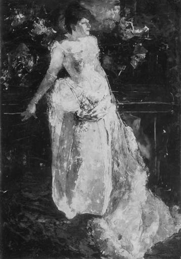 | Keywords: Theo Frenkel (Mann-Bouwmeester) in haar rol als Francine de Riverolles door George Hendrik Breitner.jpg nl Actrice Theo Mann-Bouwmeester in de rol van Francine de Riverolles oil on canvas 1887 217 x 152 cm signed u r G H Breitner http //www rkd nl/rkddb/dispatcher aspx action search database ChoiceImages search priref 104184 Stedelijk Museum Amsterdam Creator George Hendrik Breitner 1887 <gallery> Breitner Mann Bouwmeester original jpg Black and white reproduction of the original painting exhibited in 1887 afterwards repainted by Breitner Breitner Mevrouw Mann-Bouwmeester als Francillon jpg Color reproduction of this repainted version </gallery> Paintings by George Hendrik Breitner 1887 Theo Mann-Bouwmeester 1887 Black and white reproductions of paintings in color PD-old-auto 1923 |