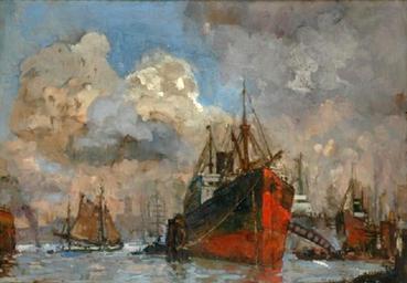 Keywords: Theodor Hummel Ships.jpg Ships; Oil on canvas 38 5 x 69 cm http //www mutualart com/Artwork/Container-Ships/6E3042449184A6A4 circa 1920 Theodor Hummel PD-old-70 Theodor Hummel 20th-century paintings of ships