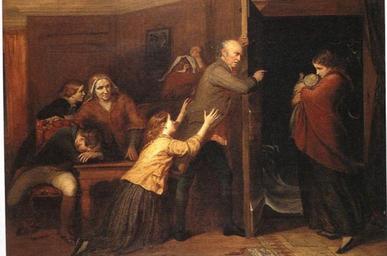 | Keywords: TheOutcastRichardRedgrave.jpg en The Outcast by Richard Redgrave 1851 Oil on canvas 31 x 41 inches Royal Academy of the Arts London A patriarch kicking his daughter and her illegitimate baby out of the house http //www victorianweb org/painting/redgrave/paintings/4 html Creator Richard Redgrave 1851 PD-old-100 1851 paintings Richard Redgrave Paintings of winter Mothers and children in art Paintings of babies Paintings of families Illegitimate children People at doors in art People in rooms in art Fathers and daughters in art Group portraits with 7 persons |