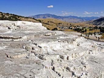 Keywords: thermal springs mammoth hot spring limestone yellowstone national park wyoming usa landscape scenery tourist attraction erosion nature volcanic minerals water geothermal terrace deposits hot water