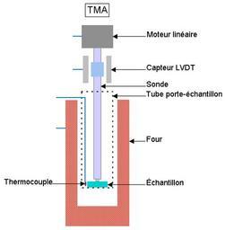 Keywords: Thermomechanical analyzer.png Fr Schéma de principe d'un analyseur thermomécanique TMA En Scheme in principle of a thermomechanical analyzer TMA Own 2008-04 Cjp24 Materials science