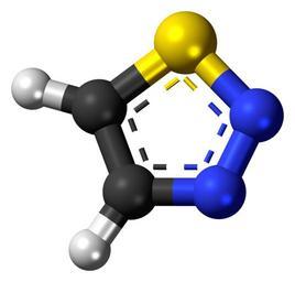 Keywords: thiadiazole aromatic ball stick model molecule chemical structure atoms elements science research formula organic bonding connection 3d substance compound ring