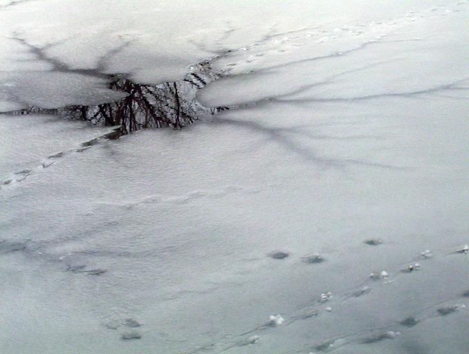 Keywords: thin ice ice frozen pond winter ice hole frozen lake frozen river frozen creek icy frozen