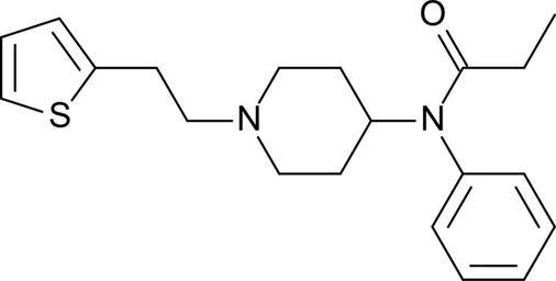 | Keywords: Thiofentanyl.svg Own work created with BKchem based on Image Thiofentanyl png en wikipedia Ronhjones CommonsHelper 2007 08 03 first version ; 2011 07 14 last version Surachit wikipedia en Surachit Original upload log page en wikipedia Thiofentanyl svg 2011-07-14 21 15 Edgar181 128×238× 20915 bytes <nowiki>fixed svg bug</nowiki> 2007-08-03 07 39 Surachit 128×238× 11341 bytes <nowiki> Own work created with BKchem based on Image Thiofentanyl png Licensing </nowiki> N-substituted anilides Opioids Receptor agonists Piperidines Thiophenes |