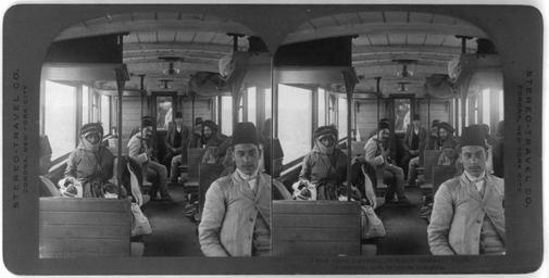 | Keywords: Third Class Carriage, Sultan's Railway, Syria WDL2510.png Artwork ru Вагон т етьего класса железная до ога Султана Си ия fr Transport de troisième classe Chemin de fer du Sultan Syrie en Third Class Carriage Sultan's Railway Syria zh 三等马车,苏丹铁路,叙利亚 pt Vagão de Terceira Classe Ferrovia do Sultão Síria ar حافلة الدرجة الثالثة، سكة حديد السلطان، سوريا ru Ст оительство железной до оги в Османской импе ии началось в се единеXIX века в целом благода я ев опейскому финанси ованию и уководству ст оительством в контексте сопе ничества между великими де жавами К началуXX века железная до ога стала основным видом т анспо та на Ближнем Востоке а этом сте еоснимке дати ованном 1908 годом изоб ажены мужчины сидящие в вагоне поезда на некото ых одета т адиционная одежда некото ые одеты в ев опейскую одежду а на голове у них т адиционные фески Снимок был сделан компанией Сте ео Т эвел Кампани из го ода Ко она Лонг-Айленд штат ью-Йо к эта небольшая фи ма вела активную деятельность в началеXX века Отк ытки со сте еоизоб ажением эффект глубины на кото ых создавался благода я наложению двух плоских изоб ажений были в то в емя ч езвычайно популя ны с еди ту истов Две фотог афии азмещаются ядом д уг с д угом и п осмат иваются че ез п ибо кото ый называется сте еоскоп Каждый глаз фокуси уется на одном изоб ажении благода я чему создается иллюзия т ехме ности изоб ажения <br>Одежда и платье; ужчины; Железнодо ожные вагоны; Железные до оги fr La construction des chemins de fer dans l'Empire ottoman a débuté à la moitié du 19ème siècle généralement avec le financement et la supervision européens dans un contexte de rivalité des grandes puissances Au début du 20ème siècle les chemins de fer étaient devenus un important mode de transport au Proche-Orient Cette image stéréoscopique prise en 1908 montre des hommes assis dans un wagon de chemin de fer certains portant un costume traditionnel d'autres habillés à l'occidentale et portant un fez Le producteur de cette photo était la Stereo Travel Company de Corona Long Island New York une petite entreprise active au début du 20ème siècle Populaire auprès des touristes à l'époque ces cartes stéréoscopiques donnaient l'illusion de la profondeur grâce à la juxtaposition de deux images plates Deux photographies sont placées côte à côte et visualisées par le biais d'un instrument appelé stéréoscope Chaque œil se concentre sur une image créant une sensation tri-dimensionnelle <br>Vêtements et habits; Hommes; Wagons de chemin de fer; Chemins de fer en Railway construction in the Ottoman Empire began in the mid-19th century generally with European financing and supervision in the context of Great Power rivalry By the early 20th century railways had become a major mode of transportation in the Near East This stereo-view image from around 1908 depicts men seated in a railroad car some wearing traditional dress others in Western dress with fezzes The producer of the image was the Stereo Travel Company of Corona Long Island New York a small firm active in the early years of the 20th century Popular with tourists at the time stereo cards create the illusion of depth through the juxtaposition of two flat images Two photographs are placed side-by-side and viewed through an instrument called a stereoscope Each eye focuses on one image creating a sense of three-dimensionality <br>Clothing and dress; Men; Railroad cars; Railroads zh 奥托曼 国的铁路建设始于 19 世纪中 , 大多为欧洲融资,由大国竞争监管 到 20 世纪早 , 铁路成为近 个主要的交 方式 这张大约拍摄于 1908 年的立体图片描绘的是 轨电车里的男人们, 些人身 传统 饰, 另 些人身 佩戴 其毡帽的西式 饰 这张照片的制 人是纽约长岛的科罗 立体旅游公司, 家 20 世纪早 十分活跃的小公司 这种图片 常受当时的旅行 们的欢迎,立体卡片可 过两个平 图像的并置创 出立体的幻觉 两张照片并排放置,然后人们 过 种被称为立视 的装置 观 每只 聚焦 幅图像,给人 种三维的立体感觉 <br> 装和 饰; 男人; 火车车厢; 铁路 pt A construção de ferrovias no Império Otomano começou em meados do século XIX em geral com financiamento e supervisão europeus no contexto da rivalidade das Grandes Potências No início do século XX as ferrovias haviam se tornado a principal forma de transporte no Oriente Próximo Esta fotografia com visualização em estéreo de cerca de 1908 retrata homens sentados em um vagão de trem alguns vestindo roupas tradicionais outros em trajes ocidentais e usando barrete fez A produção da imagem é da empresa Stereo Travel Company de Corona Long Island Nova Iorque uma pequena firma em atividade no início do século XX Popular entre os turistas na época os cartões em estéreo criavam a ilusão de profundidade através da justaposição de duas imagens planas Duas fotografias são colocadas lado a lado e visualizadas através de um instrumento chamado este