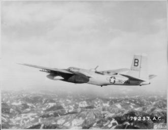 | Keywords: This B-26 is going hunting, and is well prepared to accommodate any Korean Communist enemy game in whatever manner it... - NARA - 542222.tif Scope and content This B-26 is going hunting and is well prepared to accommodate any Korean Communist enemy game in whatever manner it may be found For a troop concentration dug in positions bivouac area a battery of hard hitting 50 caliber machine guns is ready; for a tank locomotive bridge or tunnel a cluster of high velocity 5-inch rockets and for vehicles storage dumps fuel and supply caches barracks warehouses gun emplacements rolling stock and dozens of other enemy targets two deadly tanks of napalm and a number of high explosive bombs are available Provisions for enemy aircraft are not neglected as evidenced by the twin fifties pointing skyward This Far East Air Forces 3rd Bomb Group B-26 light bomber represents a truly formidable huntsman General notes 542222 Local identifier 342-AF-79257AC Department of Defense Department of the Air Force 09/26/1947 - Still Picture Records Section Special Media Archives Services Division NWCS-S National Archives at College Park 8601 Adelphi Road College Park MD 20740-6001 ca 02/1951 Record group Record Group 342 Records of U S Air Force Commands Activities and Organizations 1900 - 2003 Record group ARC 654 Black and White Photographs of U S Air Force and Predecessors' Activities Facilities and Personnel Domestic and Foreign compiled 1930 - 1975 documenting the period 1863 - 1975 Series ARC 542185 File unit File unit ARC Variant control numbers Agency-Assigned Identifier NASM 4A 26341<br /> NAIL Control Number NWDNS-342-AF-79257AC yes Other versions NARA-cooperation PD-USGov B-26 Invaders in the Korean War Korean War in 1951 Napalm tanks |