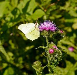 Keywords: thistle blossom bloom gonepteryx rhamni butterfly bud prickly summer bizarre plant spur close pink violet