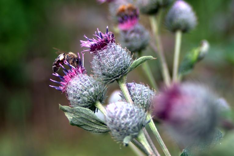 Keywords: thistle flower bee meadow summer plant spikes nature flowering thistle flower thistles violet