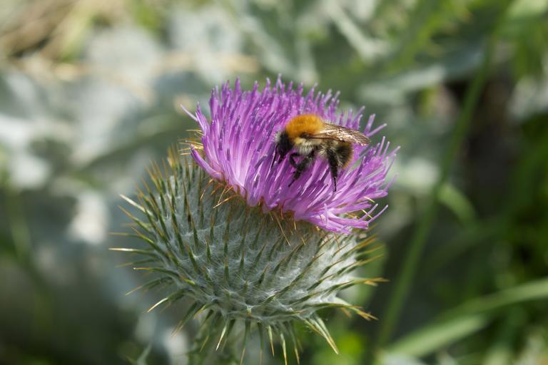 Keywords: thistle flower hummel blossom bloom flora fauna summer violet nature