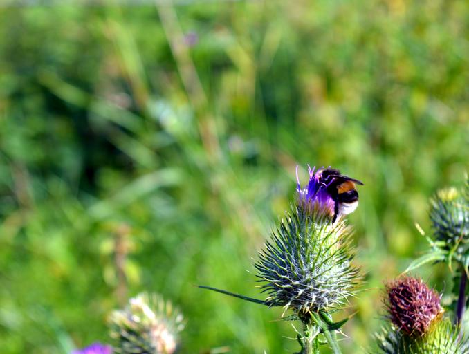 Keywords: thistle hummel prickly blossom bloom thistle flower wild flower purple insect bee nature plant macro close