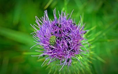 Keywords: thistle thistle flower close grünrüssler-phyllobius pomaceus beetle insect green beetle plant