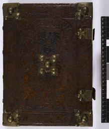 | Keywords: THOMÆ EBENDORFFER DE HASELBACH Directorium Historicum- A compendium of the history of the Emperor., of the West, preceded by a short account of the Four Monarchies; in seven books, the last - Upper cover (Add Ms 22273).jpg Style Armorial Lettered cover eg intitals titles; Caption Upper cover; Colour Brown; Edge Unspecified exhibition history Decorative Technique Cuir-cisele cut leatherwork ; Cover Material Calf n the original leather binding stamped on one side with the arms of Austria the inscription Fridericus Rex etc 1451 the Emperor's device A E I O U and the name of the binder Petrus ligator; and on the other side with a shield bearing a griffin with an ox's head On the inside of the cover are the signatures of Joannes Theobald Gallinger 1645 1677 and his son-in-law Julius Fridericus Bernard Amtschreiber at Buchsweiler or Bouxweiller in Hanau-Lichtenberg Quarto With metal centrepiece bosses and 2 pairs of clasps catching on to the upper cover object history Text 15c; Austria; Unspecified object type Cc-zero place of creation Binding Austria place of discovery Unspecified British Library image http //www bl uk/catalogues/bookbindings/LargeImage aspx RecordId 020-000016619 ImageId ImageId 55859 Copyright BL THOMÆ EBENDORFFER DE HASELBACH Directorium Historicum A compendium of the history of the Emperor of the West preceded by a short account of the Four Monarchies; in seven books the last of which is an abridged recapitulation of the others from the origin of Rome downwards Written for the Emperor Frederick III in 1450 by his chaplain Thomas Ebendorffer of Haselbach in Lower Austria Canon of St Stephen's Vienna and Pastor of Bertholdsdorf Manuscript on parchment Uploaded with GWToolset THOMÆ EBENDORFFER DE HASELBACH Directorium Historicum A compendium of the history of the Emperor of the West preceded by a short account of the Four Monarchies; in seven books the last - Upper cover Add Ms 22273 http //www webarchive org uk/bldatasets/bindings/Add22273 jpg Bookbinding 15th-century bookbinding British Library Bookbindings Taken with Phase One P45+ |