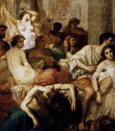 | Keywords: Thomas Couture - Romans of the Decadence (detail) - WGA05565.jpg Artwork Creator Thomas Couture Romans of the Decadence 1847 Oil on canvas Institution Musée d'Orsay object history credit line accession number WGA link 5565 http //www wga hu/art/c/couture/decadent jpg http //www wga hu/html/c/couture/decadent html PD-old-100 painting historical French 1801-1850 Les Romains de la décadence - Thomas Couture WGA form painting WGA type historical WGA School French WGA time period 1801-1850 1840s paintings from France 1847 paintings |