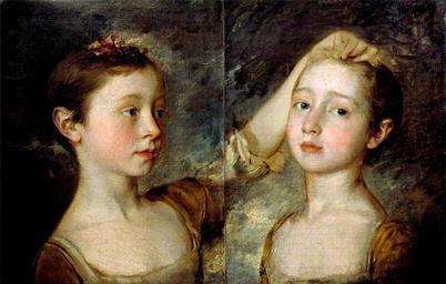 | Keywords: Thomas Gainsborough - Mary and Margaret Gainsborough, the artist's daughters.jpg Artwork Creator Thomas Gainsborough c 1758 Oil on canvas cm 40 6 58 4 Institution VAM British Galleries 52d Accession number F 9 Credit line The Forster Bequest 1876 http //collections vam ac uk/item/O17303 Victoria and Albert Museum 1 120923~212931 2 http //www bbc co uk/arts/yourpaintings/paintings/portrait-of-the-painters-two-daughters-30892 BBC Your Paintings Other versions PD-old-100-1923 DEFAULTSORT 1758; Mary Margaret Gainsborough Female portraits by Thomas Gainsborough Portraits of children by Thomas Gainsborough 18th-century portrait paintings in the Victoria and Albert Museum 1758 oil on canvas paintings in the United Kingdom Portrait 1758 portrait paintings from Great Britain 18th-century family portraits 18th-century oil portraits of girls at bust length Girls facing right in art Images from BBC Your Paintings Portrait paintings of sisters Portraits of artist's children Portraits with 2 persons Two girls in art |