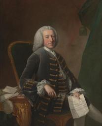 | Keywords: Thomas Hudson - Charles Pinfold - Google Art Project.jpg No inscription Inscription _Signed_and_Dated Signed and dated in ocher color left center T Hudson Pinxit 1756 Not on View Oil on canvas sitting seated Pinfold Charles man documents chair desk table curtain portrait papers special url_id BgF0zURLDYyw4A PD-old-100-1923 1779 Google Art Project works by Thomas Hudson 18th-century portrait paintings in the Yale Center for British Art | ||||