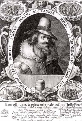 | Keywords: blackandwhite black and white Thomas Percy was born in 1560. He was a wild and belligerent character, who was briefly jailed for killing a Scotsman in a brawl in 1596. A Catholic convert, his marriage to Martha Wright, the sister of subsequent fellow conspirators Christopher and John Wright, had something to do with his conversion. Percy came from a great aristocratic family; his great-grandfather had been the fourth Earl of Northumberland and he was trusted and employed by his cousin, the ninth Earl, who made him constable of his castle at Alnwick, Northumberland. Northumberland even used him in political missions, such as discussing on his behalf with King James the future position of Catholics in England. The Earl was appointed captain of the King's bodyguard early in the new reign. He made Percy one of the bodyguards, but did not make Percy take the oath required which Percy, as a Catholic, would not have been able to take. As well as being related to the Wright brothers, Percy was a friend of Catesby. He was said to have been frustrated by the King's failure to carry out a promise of leniency towards Catholics and was initiated into Catesby's plot in May 1604. Percy rented the house next to the House of Lords from Henry Ferrers of Baddesley Clinton House and later on in 1605 rented the basement under the House of Lords. Percy dined with Northumberland on the evening before 5 November, to try to find out whether the Plot had been discovered. Because Percy had rented the property in which Guy Fawkes was found, he was easily identified as one of the conspirators. He was found at Holbeach House with the others, and killed in the shoot-out on 8 November. His head was cut off and, like Catesby's, was stuck on the roof of the House of Commons. Thomas Percy was born in 1560. He was a wild and belligerent character, who was briefly jailed for killing a Scotsman in a brawl in 1596. A Catholic convert, his marriage to Martha Wright, the sister of subsequent fellow conspirators Christopher and John Wright, had something to do with his conversion. Percy came from a great aristocratic family; his great-grandfather had been the fourth Earl of Northumberland and he was trusted and employed by his cousin, the ninth Earl, who made him constable of his castle at Alnwick, Northumberland. Northumberland even used him in political missions, such as discussing on his behalf with King James the future position of Catholics in England. The Earl was appointed captain of the King's bodyguard early in the new reign. He made Percy one of the bodyguards, but did not make Percy take the oath required which Percy, as a Catholic, would not have been able to take. As well as being related to the Wright brothers, Percy was a friend of Catesby. He was said to have been frustrated by the King's failure to carry out a promise of leniency towards Catholics and was initiated into Catesby's plot in May 1604. Percy rented the house next to the House of Lords from Henry Ferrers of Baddesley Clinton House and later on in 1605 rented the basement under the House of Lords. Percy dined with Northumberland on the evening before 5 November, to try to find out whether the Plot had been discovered. Because Percy had rented the property in which Guy Fawkes was found, he was easily identified as one of the conspirators. He was found at Holbeach House with the others, and killed in the shoot-out on 8 November. His head was cut off and, like Catesby's, was stuck on the roof of the House of Commons. |