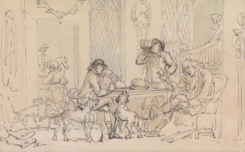 | Keywords: Thomas Rowlandson - Breakfast before the Hunt - Google Art Project.jpg Inscribed in black ink on mount lower left No 11 ; Verso in graphite lower center D26692 Inscription _Signed_and_Dated Not signed not dated Not on View Pen and black and gray ink with brown and blue wash on medium moderately textured beige laid paper mounted on moderately thick moderately textured cream wove paper dogs animals dinner eating drinking meal breakfast horse animal interior men hunters hunt food antlers doorway windows chairs table saddle sporting art room special url_id DwFQvtzgvASQIQ PD-old-100-1923 1827 Drawings and watercolours by Thomas Rowlandson Google Art Project works by Thomas Rowlandson Hunting in art |