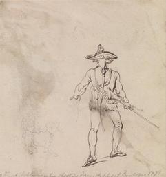 | Keywords: Thomas Rowlandson - A French Nobleman out Shooting - Google Art Project.jpg Inscribed in graphite lower center a French Nobleman in his shooting dress - sketched at Boulogue 1778- ; in ink verso center Paul Mellon Collection stamp; in graphite verso lower center D3575 Inscription _Signed_and_Dated Not signed not dated Not on View Pen and brown ink with graphite; verso gray brown and red brown blots on medium moderately textured beige wove paper man hat rifle long gun sketch sporting art special url_id _QEPCba1ERYHeA PD-old-100-1923 1827 Drawings and watercolours by Thomas Rowlandson Google Art Project works by Thomas Rowlandson Queues hair fashion |