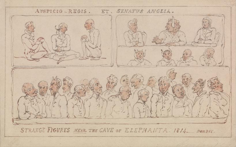 | Keywords: Thomas Rowlandson - The Grand Master or the Adventures of Qui Hi? in HIndostan - Google Art Project.jpg Inscribed in pen and red-brown ink upper left AUSPICIO - REGIS ; in dark gray ink upper right ET SENATUS ANGELIA ; in pen and red-brown ink lower center STRANGE FIGURES NEAR 'near' underlined THE CAVE OF ELEPHANTA 1814 --- BOMBAY ; in graphite lower right illegible words ; in graphite verso lower center plate at p 252 of Adventures of Qui Hi ; in ink verso lower right PAUL MELLON COLLECTION stamp Inscription _Marks watermark similar to Heawood 3250 or 3251 Inscription _Signed_and_Dated Not signed not dated Not on View Watercolor with pen and red-brown and gray ink over graphite on medium slightly textured beige wove paper satire youth elderly men horns genre subject special url_id 7AGFv6th4wZCNQ PD-old-100-1923 1827 Drawings and watercolours by Thomas Rowlandson Google Art Project works by Thomas Rowlandson Thomas Rowlandson - The Grand Master or the Adventures of Qui Hi? in HIndostan - Google Art Project.jpg Inscribed in pen and red-brown ink upper left AUSPICIO - REGIS ; in dark gray ink upper right ET SENATUS ANGELIA ; in pen and red-brown ink lower center STRANGE FIGURES NEAR 'near' underlined THE CAVE OF ELEPHANTA 1814 --- BOMBAY ; in graphite lower right illegible words ; in graphite verso lower center plate at p 252 of Adventures of Qui Hi ; in ink verso lower right PAUL MELLON COLLECTION stamp Inscription _Marks watermark similar to Heawood 3250 or 3251 Inscription _Signed_and_Dated Not signed not dated Not on View Watercolor with pen and red-brown and gray ink over graphite on medium slightly textured beige wove paper satire youth elderly men horns genre subject special url_id 7AGFv6th4wZCNQ PD-old-100-1923 1827 Drawings and watercolours by Thomas Rowlandson Google Art Project works by Thomas Rowlandson |