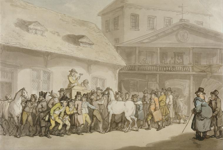 | Keywords: Thomas Rowlandson - A Horse Sale in Hopkins's Repository, Barbican - Google Art Project.jpg Google Art Project watercolor London 1756 London 1827 Thomas male 2332358 Rowlandson British 1756 - 1827 /collection/yale-center-for-british-art/artwork/a-horse-sale-in-hopkinss-repository-barbican-thomas-rowlandson/2412580/ Thomas Rowlandson Artist /artist/thomas-rowlandson/4131603/ 4131603 /collection/yale-center-for-british-art/ Yale Center for British Art 2305845 http //britishart yale edu/ 2/23/2012 10 12 30 PM /collection/yale-center-for-british-art/artwork/a-horse-sale-in-hopkinss-repository-barbican-thomas-rowlandson/2412580/ 1798 between 1798 and 1800 dog animal riding crops horses animals men auction block thatched roofs false balcony windows town buildings Weather vanes canes clock genre subject Watercolor with pen and black and gray ink on moderately thick slightly textured cream wove paper 333 2412580 False 1800 3/24/2012 6 36 56 PM YCBA/lido-TMS-47379 http //collections britishart yale edu/vufind/Record/1668822 Yale Center for British Art Paul Mellon Collection painting 1790 1810 London Creation w456 x h333 cm between 1798 and 1800 False 1 48405797101449 Item a-horse-sale-in-hopkinss-repository-barbican-thomas-rowlandson A Horse Sale in Hopkins's Repository Barbican a 456 No inscription Inscription _Signed_and_Dated Not signed not dated Not on View Watercolor with pen and black and gray ink on moderately thick slightly textured cream wove paper dog animal riding crops horses animals men auction block thatched roofs false balcony windows town buildings Weather vanes canes clock genre subject special url_id UQHJcsUhkCv1rw PD-old-100-1923 1827 Drawings and watercolours by Thomas Rowlandson Google Art Project works by Thomas Rowlandson |