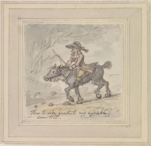 | Keywords: Thomas Rowlandson - How to Ride Genteel and Agreeably Downhill - Google Art Project.jpg Inscribed in pen and gray ink lower center How to ride genteel and agreeable downhill in graphite verso upper lower C Inscription _Signed_and_Dated Not signed not dated Not on View Watercolor with pen and red-brown ink wash over graphite; verso graphite tracing on medium slightly textured beige wove paper mounted on wove paper riding crop horse animal man rocks hat genre subject special url_id 2QHvesbj3gc8uQ PD-old-100-1923 1827 Drawings and watercolours by Thomas Rowlandson Google Art Project works by Thomas Rowlandson Equestrian drawings |