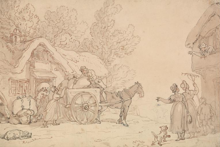 | Keywords: Thomas Rowlandson - Loading Sacks into a Cart - Google Art Project.jpg Inscribed in graphite verso lower right D 64 ; in ink verso lower center PAUL MELLON COLLECTION stamp Inscription _Signed_and_Dated Not signed not dated Not on View Pen and red red-brown and dark gray ink with brown wash over graphite on medium moderately textured beige wove paper dogs animals horse animal loading child men women chimney architectural element windows wheels cottages trees rake sacks cart wagon genre subject special url_id QwH9njsm4BPtgg PD-old-100-1923 1827 Drawings and watercolours by Thomas Rowlandson Google Art Project works by Thomas Rowlandson |