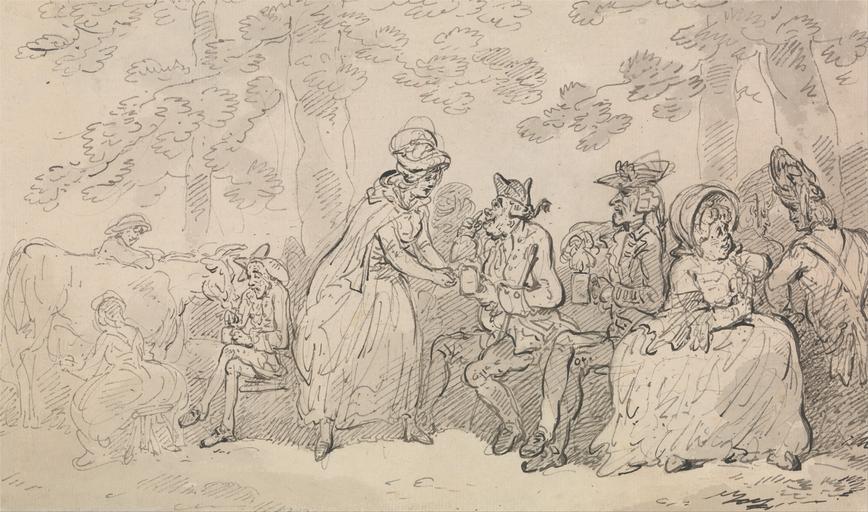 | Keywords: Thomas Rowlandson - Milkmaids and Gentlemen in St. James's Park - Google Art Project.jpg No inscription Inscription _Marks watermark Shorter 184 Inscription _Signed_and_Dated Not signed not dated Not on View Pen and gray-brown ink with wash over graphite; verso pen and gray brown ink and watercolor blots on medium moderately textured blued white laid paper sitting milkmaids soldiers men women trees park grounds bonnets hats hats genre subject special url_id lAEySoJtkodupA PD-old-100-1923 1827 Drawings and watercolours by Thomas Rowlandson Google Art Project works by Thomas Rowlandson Milkmaids in art St James's Park in art 1800 Drawings of soldiers |