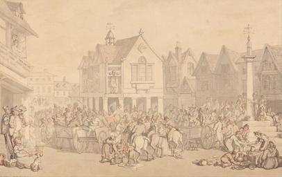 | Keywords: Thomas Rowlandson - Newbury Market Place, Berkshire - Google Art Project.jpg Inscribed in gray ink lower left Newbury Berkshire inscription has been cut off midway down but still legible Inscription _Signed_and_Dated Not signed not dated Not on View Watercolor with pen and brown red-brown and gray ink over graphite on moderately thick slightly textured beige wove paper dogs animals crowd horses animals children people by age group men women criminal market event balcony chimneys architectural elements windows steps buildings square open space weathervanes jugs baskets dishes wagons cityscape special url_id 1AEotuAn9GrD2w PD-old-100-1923 1827 Drawings and watercolours by Thomas Rowlandson Google Art Project works by Thomas Rowlandson |