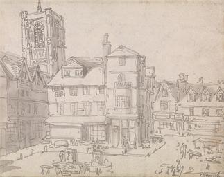 | Keywords: Thomas Rowlandson - Norwich Market Place - Google Art Project.jpg Inscribed in pen and gray ink lower right Norwich ; in graphite verso lower right Rilhes Inscription _Signed_and_Dated Not signed not dated Not on View Pen and gray-brown ink and wash over graphite; verso pen and gray brown ink and wash over graphite on medium moderately textured blued white wove paper drinking smoking men woman market event chimneys architectural elements fireplace window windows figures town buildings chairs table support furniture pipes smoking equipment bottle jug glasses drinking glasses dishes cityscape genre subject special url_id QAGPV-O4qk7zPQ PD-old-100-1923 1827 Drawings and watercolours by Thomas Rowlandson Google Art Project works by Thomas Rowlandson Norwich Market |