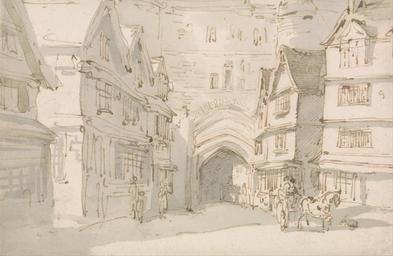 | Keywords: Thomas Rowlandson - The South Gate, Exeter - Google Art Project.jpg Inscribed in royal blue ink lower right Paul Mellon Collection seal D28141 LX Inscription _Signed_and_Dated Not signed not dated Not on View Pen and brown ink and wash on medium slightly textured blued white wove paper architectural subject horse animal south gate windows archway town buildings carriage cityscape figures representations special url_id -wEGCAHob_dDbg PD-old-100-1923 1827 Drawings and watercolours by Thomas Rowlandson Google Art Project works by Thomas Rowlandson History of Exeter |