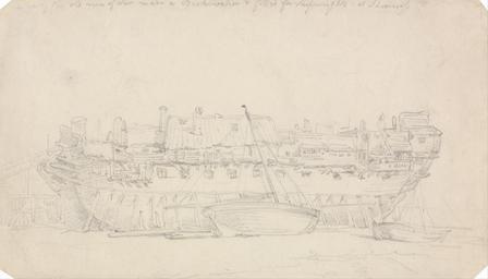 | Keywords: Thomas Rowlandson - Study of a Hulk - Google Art Project.jpg Inscribed in graphite upper center One of the old men of War made a Brakewater and fitted for Shipwrights at Sherness Inscription _Marks watermarks horn design 1802 ; not in Shorter not in Churchill similar to no 324 Heawood see pls 352 353 Inscription _Signed_and_Dated Not signed not dated Not on View Graphite on medium slightly textured blued white laid paper oars ship ship study visual work marine art marine art hulk watercraft by form hulk watercraft by form boats boats special url_id egEwq1-CpZ_P6A PD-old-100-1923 1827 Drawings and watercolours by Thomas Rowlandson Google Art Project works by Thomas Rowlandson Drawings of ships |