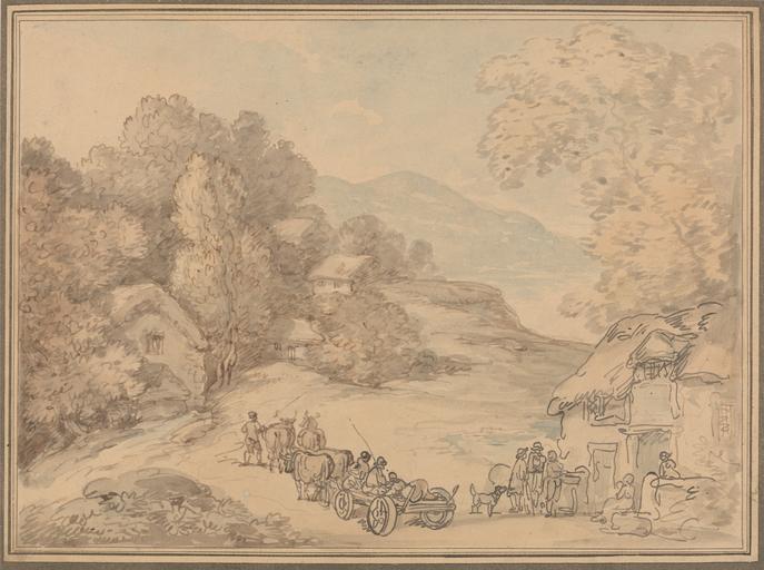 | Keywords: Thomas Rowlandson - A Village in a Hilly Landscape - Google Art Project.jpg  Inscribed in blue ink verso lower center PAUL MELLON COLLECTION collector's stamp Inscription _Signed_and_Dated Not signed not dated Not on View Watercolor with pen and gray and brown ink over graphite on thick slightly textured brown wove paper cattle dog animal figures village cottages hills trees rural area wagon landscape special url_id LwFpzJcM6R559w PD-old-100-1923 1827 Drawings and watercolours by Thomas Rowlandson Google Art Project works by Thomas Rowlandson |