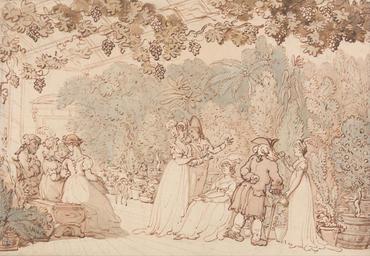 | Keywords: Thomas Rowlandson - The Vinery - Google Art Project.jpg Inscribed in black ink over graphite lower left TEL Lugt 2420a ; in graphite verso upper left 23 ; in graphite verso center 3 encircled Inscription _Signed_and_Dated Not signed not dated Not on View Pen and brown ink with pale brown and pale green wash over graphite on medium slightly textured cream wove paper sitting men women feathers plants trees trellis garden hats cane pots genre subject special url_id kwF-OikFfBFDGw PD-old-100-1923 1827 Drawings and watercolours by Thomas Rowlandson Google Art Project works by Thomas Rowlandson Group portraits with 9 persons |