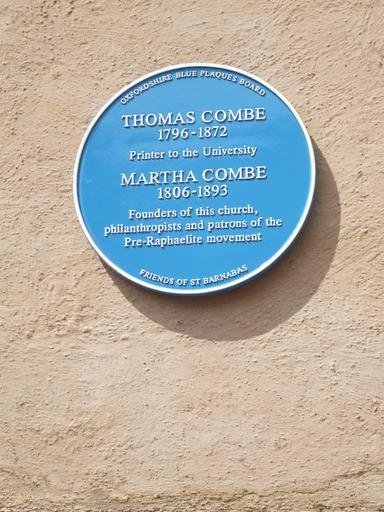 Keywords: ThomasCombe.jpg Blue plaque to Thomas Combe Oxford Own 2008-05-02 Omassey Pre-Raphaelite Plaques in Oxford Thomas Combe