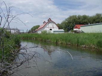 | Keywords: ThompsonSpringCreek2008.jpg en Thompson Spring Creek flow behind the MZ Ranch barn near Belgrade MT Own Mike Cline 2008-06 location possible June 2008 in Montana East Gallatin River Gallatin County Montana Ranches in Montana Streams in the United States Barns in Montana |