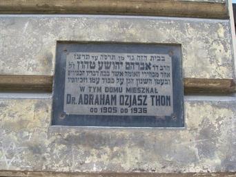 Keywords: Thon1.JPG pl Tablica na kamienicy przy ul Bogusławskiego 5 w Krakowie w której mieszkał Ozjasz Thon own Miezian 2009-06-29 Ozjasz Thon Here-lived plaques in Kraków Kraków Ghetto Bogusławskiego Street in Kraków