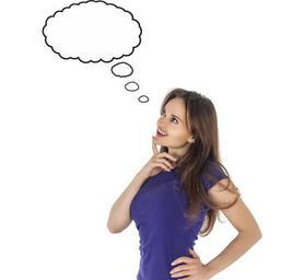 Keywords: thought thoughts think idea dream dreams people stand-alone brown haired girl beautiful white background emotions cloud of thoughts smile