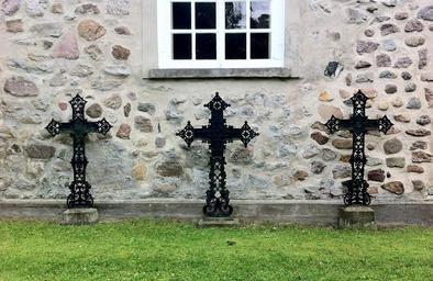 Keywords: three crosses cross cemetery chapel church black window wall rush funeral mourning