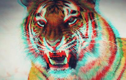 Keywords: three dimensional animal tiger effects asymmetric abstract feline portrait wallpaper background processing imagination art colors lines