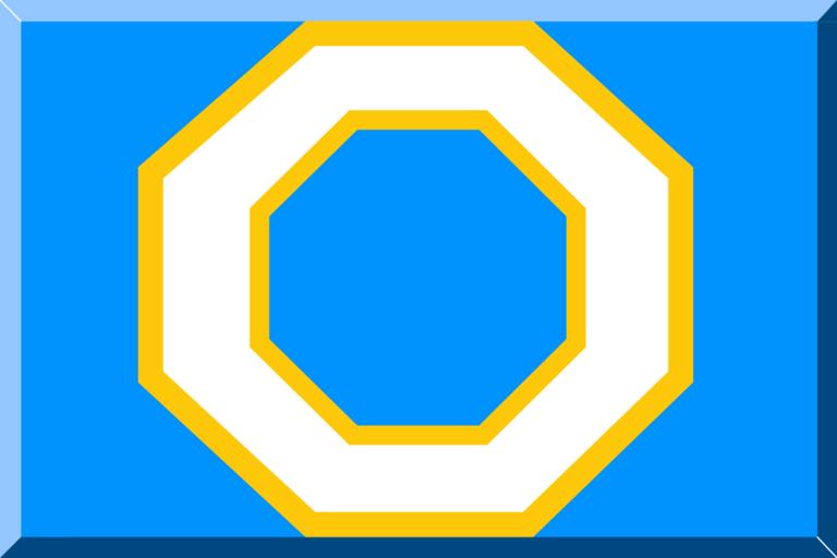 | View Original: | Three-dimensional blue flag with a white octagon with golden borders.svg (601x401) | |||
