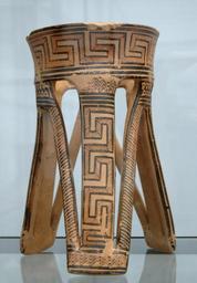 | Keywords: Three-feet support Staatliche Antikensammlungen 7645.jpg Gefäßbeigabe aus einem Grab Dieser tönerne Ständer wohl für eine Weinkanne bildet kostbare Bronzedreifüße weit älterer Zeit nach eine Anspielung auf die »heroische« Frühzeit Attisch frühgeometrisch um 850 v Chr Pottery from a tomb This clay support probably for a wine jug copies the precious bronze tripods of older times an allusion to the heroic ages Attica early-Geometric style ca 850 BC Potterie provenant d'une tombe Ce support d'argile sans doute pour une jarre à vin imite les précieux tripodes en bronze des temps anciens une référence à l'« Âge héroïque » Attique style géométrique précoce v 850 av J -C Museum Staatliche Antikensammlungen Room 1 object history credit line accession number Inv 7645 User Bibi Saint-Pol own work 2007-02-09 other versions Tripod stands support furniture Ancient Greek vase supports Staatliche Antikensammlungen - Room 1 Greek Geometric pottery in the Staatliche Antikensammlungen 9th-century BC pottery in Germany |