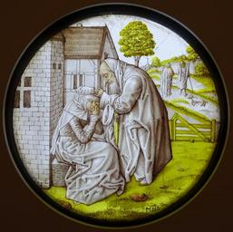 | Keywords: Three Rounels from the Life of Tobias, 1. Tobit comforts Hanna, Southern Netherlands, c. 1500, stained glass - Museum Schnütgen - Cologne, Germany - DSC09853.jpg en Exhibit in the Museum Schnütgen - Cologne Germany 2015-11-29 07 52 19 own Daderot other versions PD-old-100 cc-zero Tondo windows of Museum Schnütgen Tobit | ||||