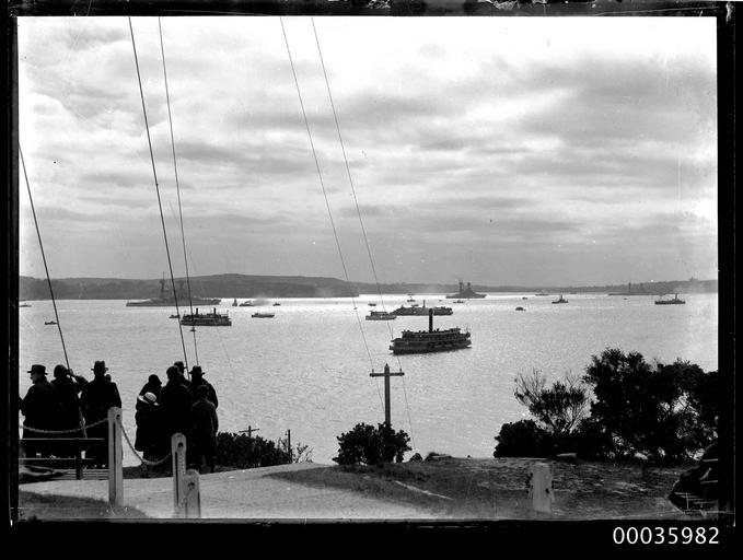 Keywords: hood collection hoodcollection 35982 samuel j hood collection samueljhoodcollection american fleet visit americanfleetvisit great white fleet greatwhitefleet american navy americannavy admiral samuel shelburne robison admiralsamuelshelburnerobison admiral ss robison admiralssrobison united states navy unitedstatesnavy lookout blackandwhite monochrome photo border outdoor sky black and white On 23 July 1925, Sydney hosted eight of the US Navy Battle Fleet's largest ships, including USS CALIFORNIA, USS COLORADO, USS TENNESSEE, USS MARYLAND, USS WEST VIRGINIA, USS NEW MEXICO, USS MISSISSIPPI and USS IDAHO. The fleet departed for New Zealand on 6 August. This photo is part of the Australian National Maritime Museum’s Samuel J. Hood Studio collection. Sam Hood (1872-1953) was a Sydney photographer with a passion for ships. His 60-year career spanned the romantic age of sail and two world wars. The photos in the collection were taken mainly in Sydney and Newcastle during the first half of the 20th century. The ANMM undertakes research and accepts public comments that enhance the information we hold about images in our collection. This record has been updated accordingly. Photographer: Samuel J. Hood Studio Collection Object no. 00035982 On 23 July 1925, Sydney hosted eight of the US Navy Battle Fleet's largest ships, including USS CALIFORNIA, USS COLORADO, USS TENNESSEE, USS MARYLAND, USS WEST VIRGINIA, USS NEW MEXICO, USS MISSISSIPPI and USS IDAHO. The fleet departed for New Zealand on 6 August. This photo is part of the Australian National Maritime Museum’s Samuel J. Hood Studio collection. Sam Hood (1872-1953) was a Sydney photographer with a passion for ships. His 60-year career spanned the romantic age of sail and two world wars. The photos in the collection were taken mainly in Sydney and Newcastle during the first half of the 20th century. The ANMM undertakes research and accepts public comments that enhance the information we hold about images in our collection. This record has been updated accordingly. Photographer: Samuel J. Hood Studio Collection Object no. 00035982 |