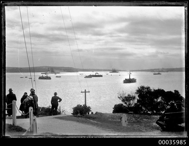 | Keywords: hood collection hoodcollection 35985 samuel j hood collection samueljhoodcollection american fleet visit americanfleetvisit great white fleet greatwhitefleet american navy americannavy admiral samuel shelburne robison admiralsamuelshelburnerobison admiral ss robison admiralssrobison united states navy unitedstatesnavy lookout blackandwhite monochrome photo border outdoor black and white On 23 July 1925, Sydney hosted eight of the US Navy Battle Fleet's largest ships, including USS CALIFORNIA, USS COLORADO, USS TENNESSEE, USS MARYLAND, USS WEST VIRGINIA, USS NEW MEXICO, USS MISSISSIPPI and USS IDAHO. The fleet departed for New Zealand on 6 August. This photo is part of the Australian National Maritime Museum’s Samuel J. Hood Studio collection. Sam Hood (1872-1953) was a Sydney photographer with a passion for ships. His 60-year career spanned the romantic age of sail and two world wars. The photos in the collection were taken mainly in Sydney and Newcastle during the first half of the 20th century. The ANMM undertakes research and accepts public comments that enhance the information we hold about images in our collection. This record has been updated accordingly. Photographer: Samuel J. Hood Studio Collection Object no. 00035985 On 23 July 1925, Sydney hosted eight of the US Navy Battle Fleet's largest ships, including USS CALIFORNIA, USS COLORADO, USS TENNESSEE, USS MARYLAND, USS WEST VIRGINIA, USS NEW MEXICO, USS MISSISSIPPI and USS IDAHO. The fleet departed for New Zealand on 6 August. This photo is part of the Australian National Maritime Museum’s Samuel J. Hood Studio collection. Sam Hood (1872-1953) was a Sydney photographer with a passion for ships. His 60-year career spanned the romantic age of sail and two world wars. The photos in the collection were taken mainly in Sydney and Newcastle during the first half of the 20th century. The ANMM undertakes research and accepts public comments that enhance the information we hold about images in our collection. This record has been updated accordingly. Photographer: Samuel J. Hood Studio Collection Object no. 00035985 |